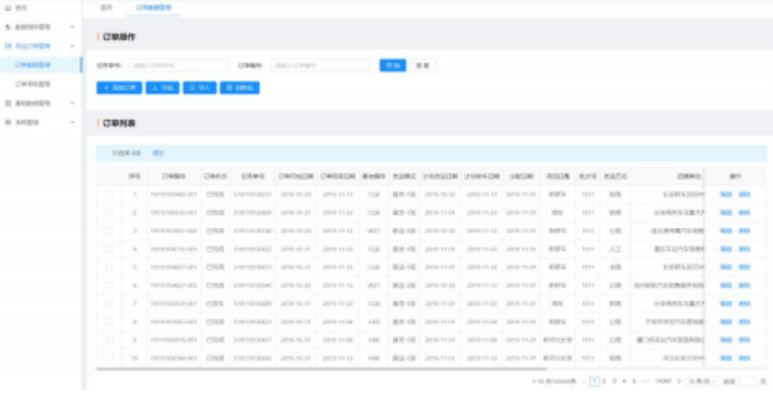 新增订单表单包含车辆、司机、基地等下拉框(数据动态从基础表加载)。