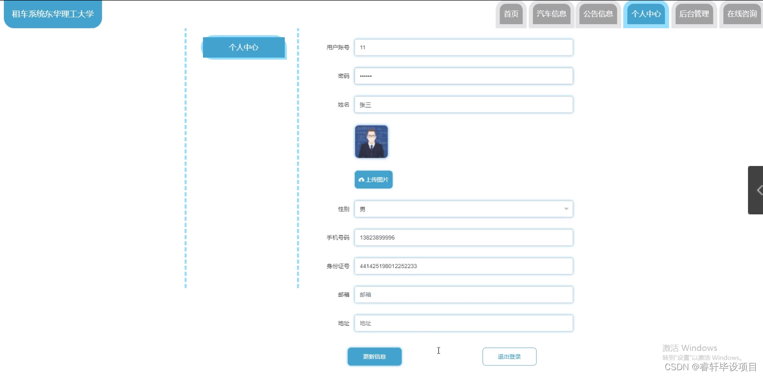 东华理工大学作为一个集教育和研究于一体的综合大学,校园面积广阔,师生员工众多。为了提高校园内部交通的便捷性和管理效率,开发一个专门的租车系统显得尤为重要。这样的系统可以为师生提供便捷的校园交通工具租赁服务,实现车辆的实时调度和管理,优化校园交通资源配置,减少碳排放,促进校园环境的可持续发展。同时,通过租车系统的数据收集与分析,学校能够更好地规划交通设施和出行策略,为校园带来更加智能化、高效化的出行解决方案