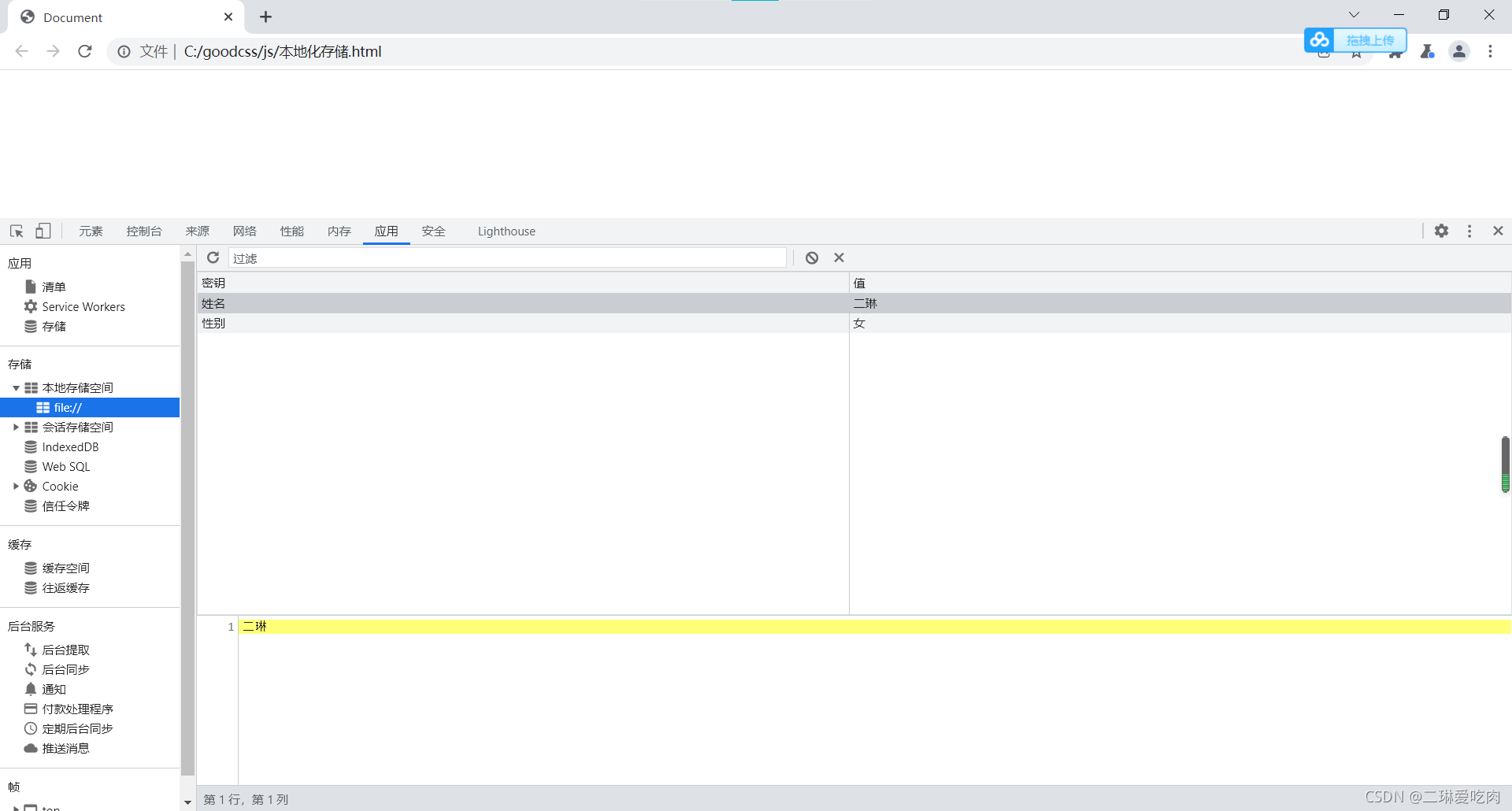 localStorage.setItem('姓名','二琳');